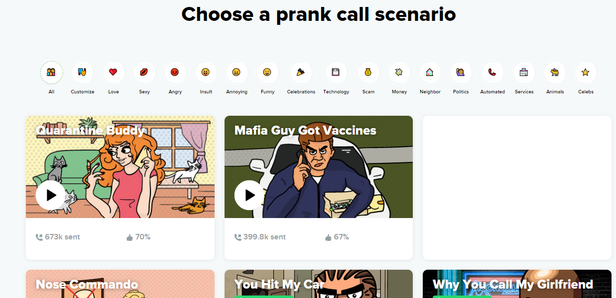 - Pick a prank from their library of pre-recorded pranks and make the perfect spoof call